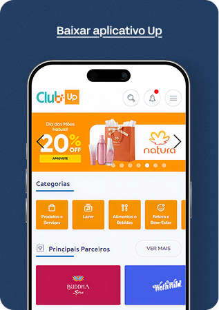 O ClubUp é seu aliado no bem-estar: um clube exclusivo para clientes Up, com descontos reais em lojas, restaurantes e muito mais, para você gastar o seu dinheiro da melhor forma e aproveitar a vida.